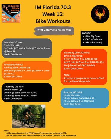 Download each week's plan from Coach Justin's Ironman Florida 70.3 Training Plan.