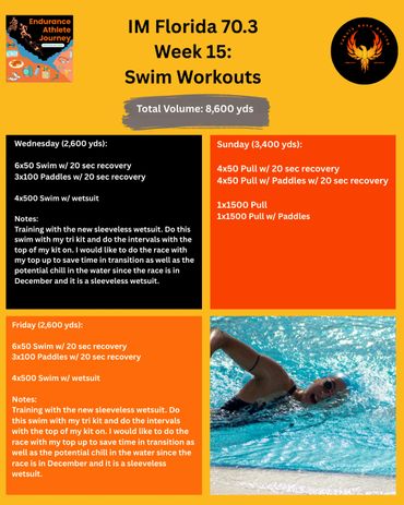 Coach Justin provides a comprehensive week 15 recap of his preparation for Ironman Florida 70.3, detailing his training and recovery strategies during the first week of taper. Despite dealing with posterior tibia tendonitis, he managed to complete all planned swim, bike, elliptical, and strength workouts, adjusting his approach to accommodate his injury and emphasizing recovery with physical therapy, massage, and mobility work. Justin describes successful wetsuit swim practices, focused tempo bike sessions, and purposeful elliptical workouts in place of running, while sharing personal insights about managing stress, trusting in his faith, and relying on his support team. He reflects on the importance of adaptability and maintaining a positive mindset as he heads into race week, expressing gratitude for the professionals who have helped him on his journey.